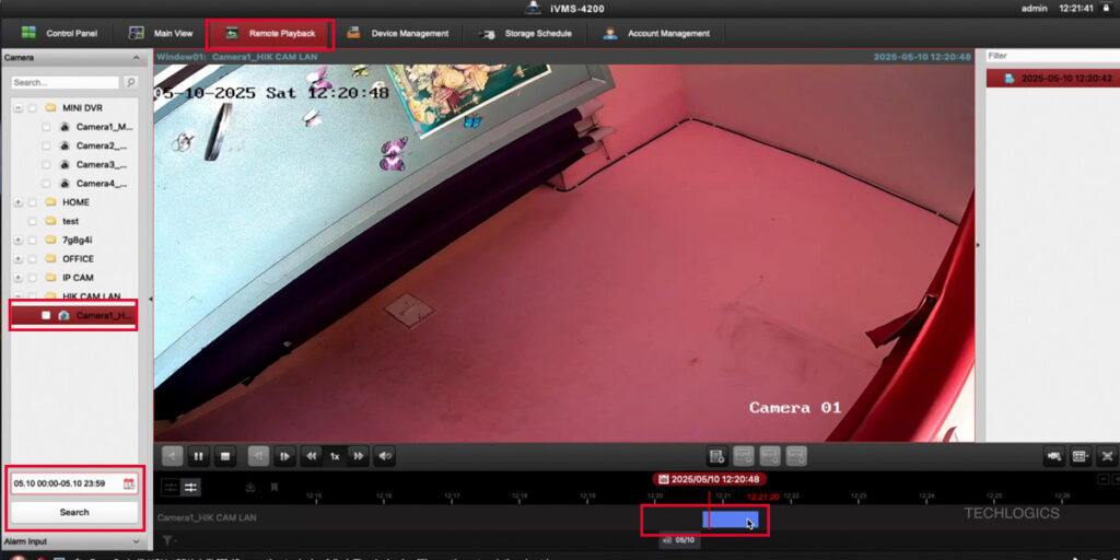 - Adjust the timeline to navigate through recorded videos and view them as needed.