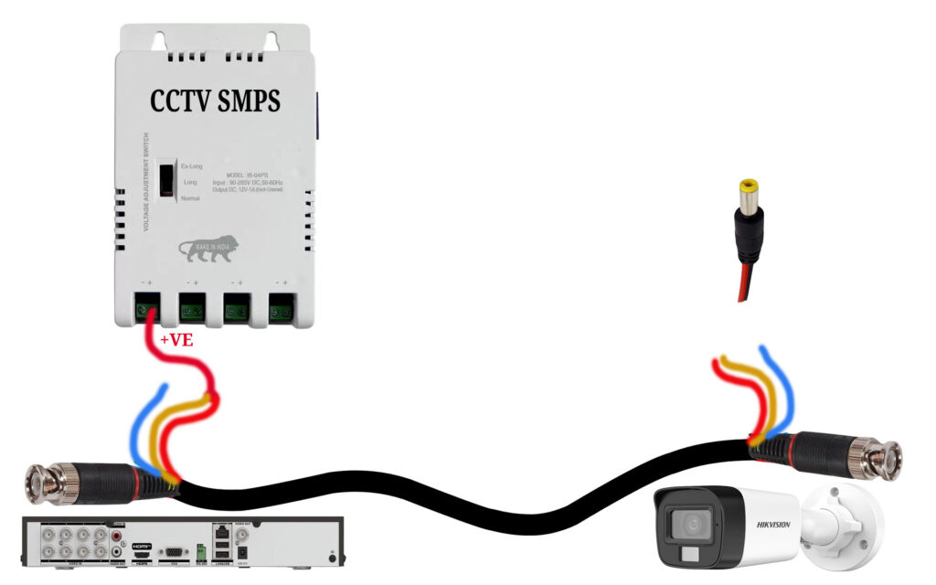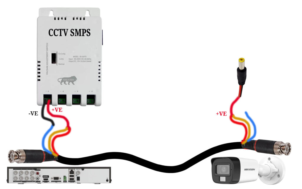 - Positive Connections: Take the two wires (red and yellow) and connect them to the positive power terminal on the SMPS. This two-wire setup ensures that the voltage sent to the camera is sufficient for its operation.