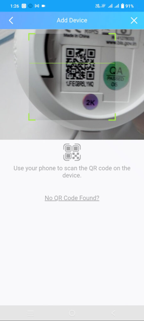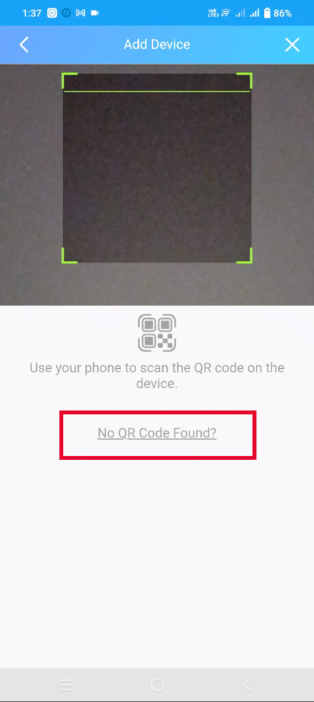 - Screen says ‘No QR Code Found’ → Tap bottom option