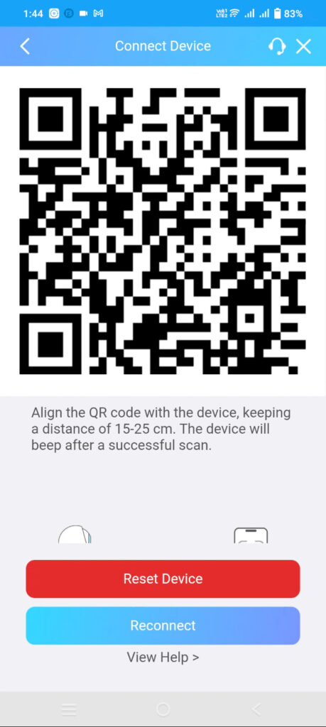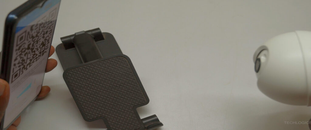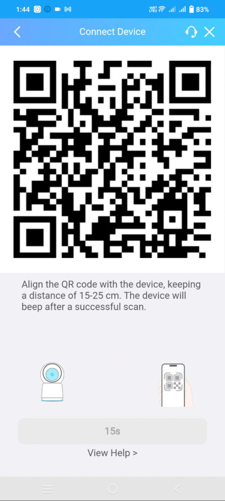 - Hold phone 15-25cm steady from white sticker QR code on camera base