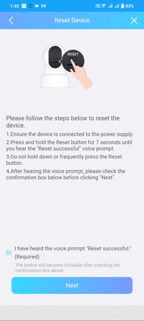 Critical: Place camera within 2 meters of router on table (don’t mount yet). Signal strength bars show in app later.