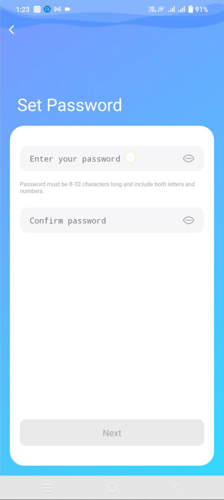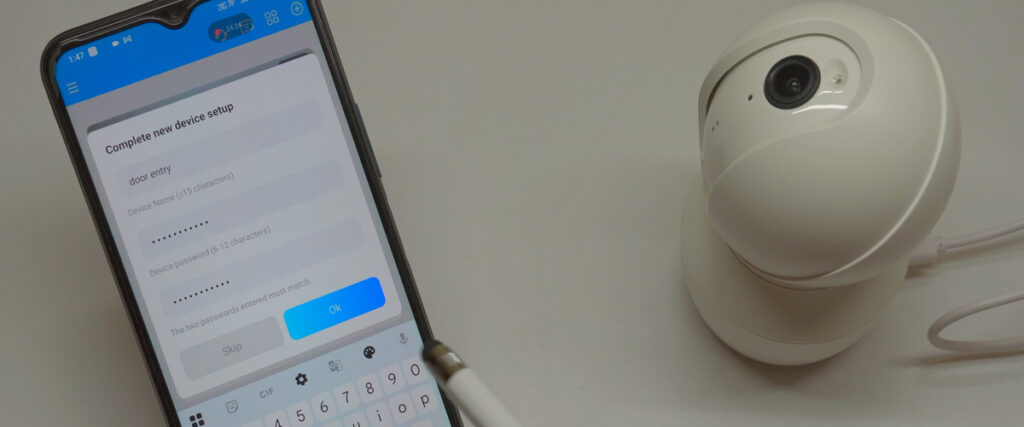 - White field: Enter 8-12 character password (ex: HomeCam2025!)