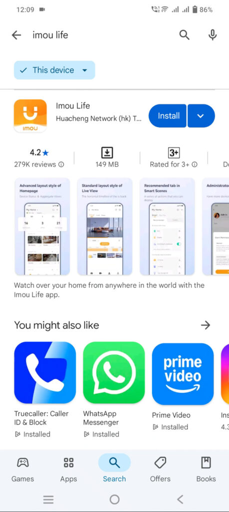 - Option 2: Manual Search: Open the Play Store, search for “Imou Lite” by Huacheng Network (check the logo to confirm). Tap “Install” and grant permissions for location, storage, and camera access.