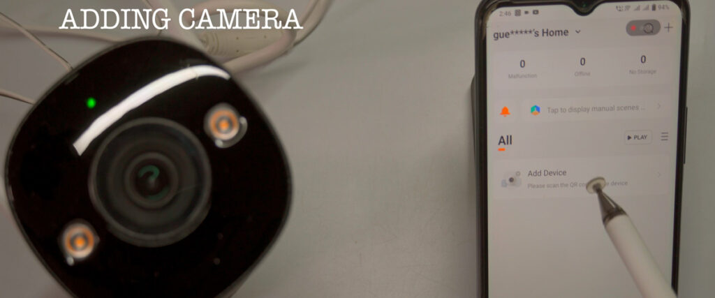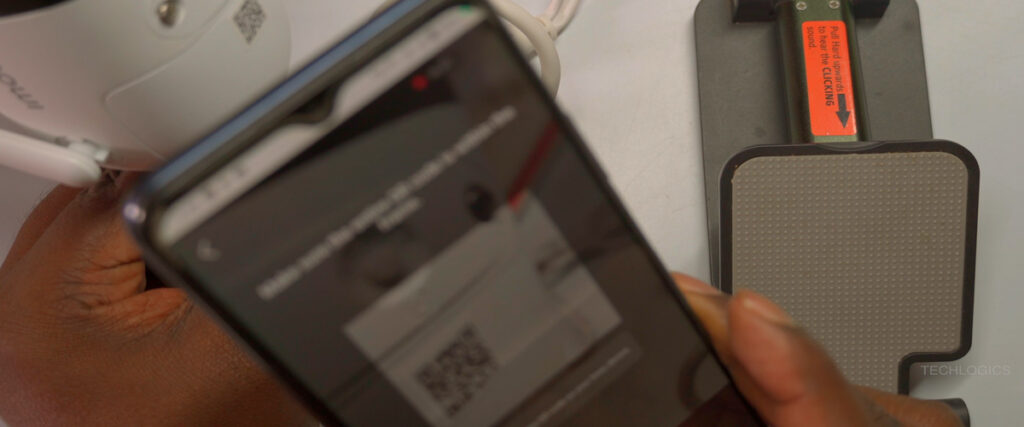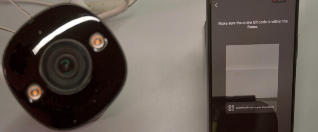 - Add Device in the App: Tap “Add Device” or the plus icon. Grant camera and location permissions, then scan the QR code on the camera body.