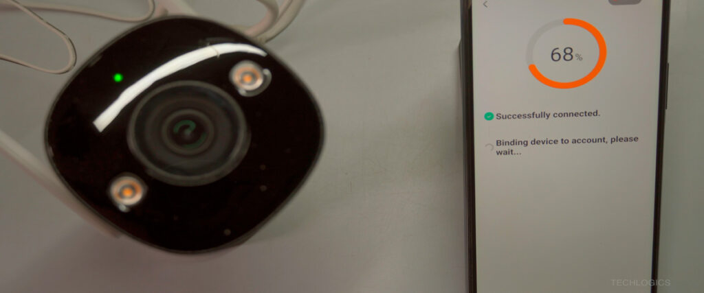 - Finalize Connection: Wait for the steady green LED and “Device added successfully” message. Name your camera (e.g., “Front Door”) for easy organization.