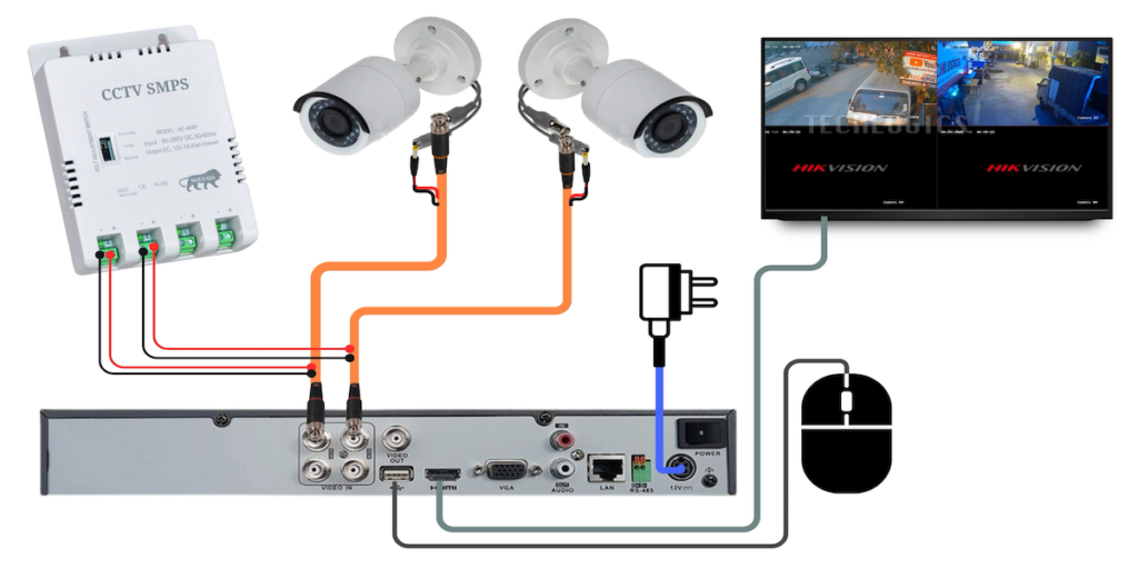 Welcome! Today, we’re diving into the essential process of setting up a 2 HD analog CCTV camera system. This guide will walk you through the wiring connections for the DVR, two cameras, a DC SMPS (Switched-Mode Power Supply), and a display screen. We’ll use simple animated diagrams to enhance your learning experience.