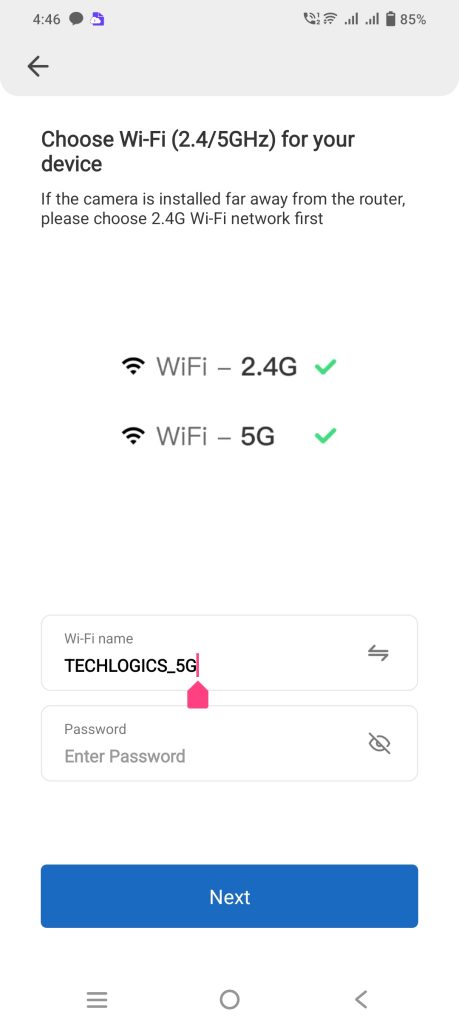 Click ‘Add device’ to add the camera to the app and configure Wi-Fi. Select the camera type as Wi-Fi camera. Also, make sure to enable Bluetooth. After that the app will list the nearest devices.