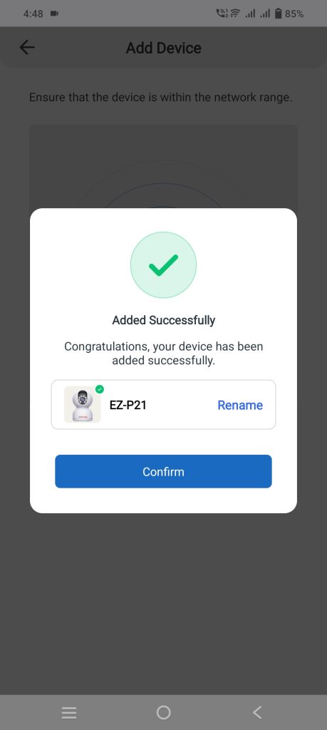 Now the camera has been successfully configured with Wi-Fi and added to the app.