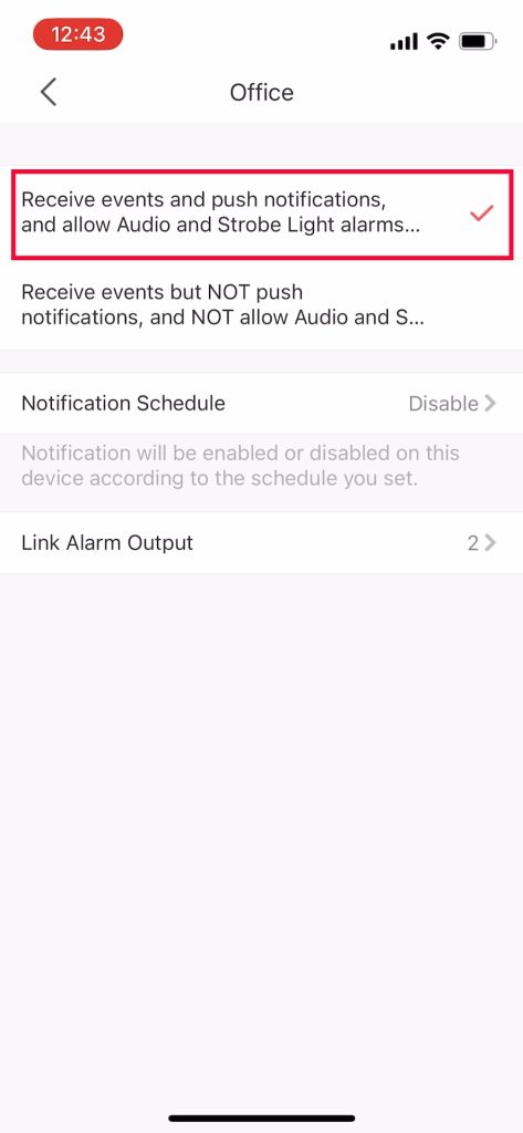 - To receive alerts on the Hik-Connect app, enable “Notify Surveillance Center.”