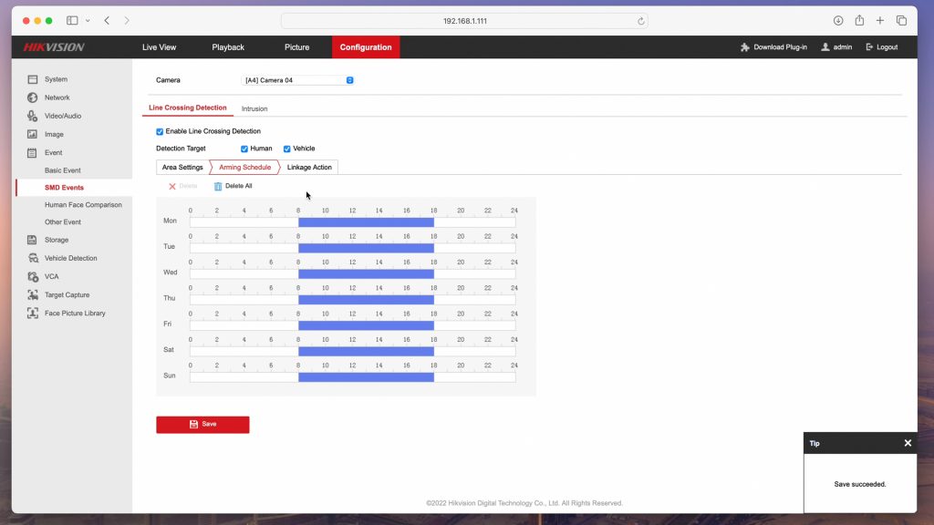 - Go to the DVR configuration, select ‘SMD (Smart) Event,’ and then choose ‘Line Crossing.’