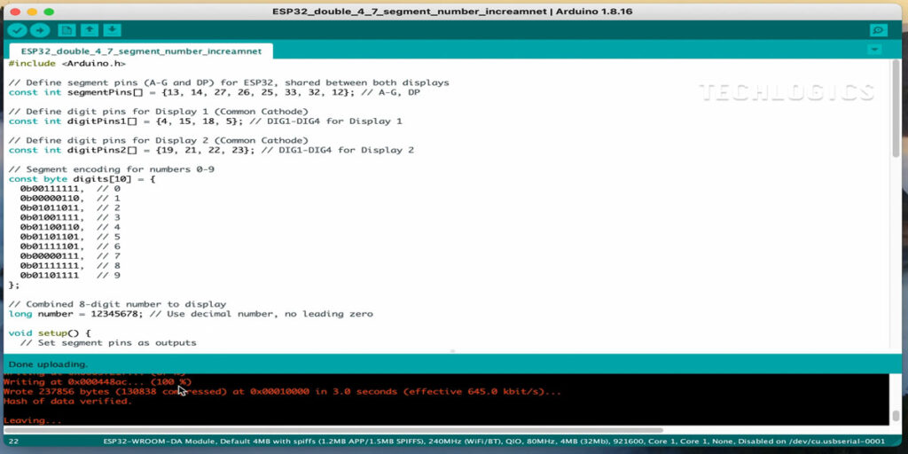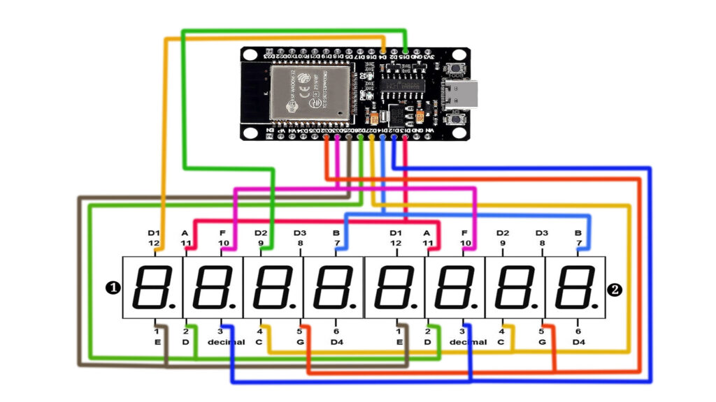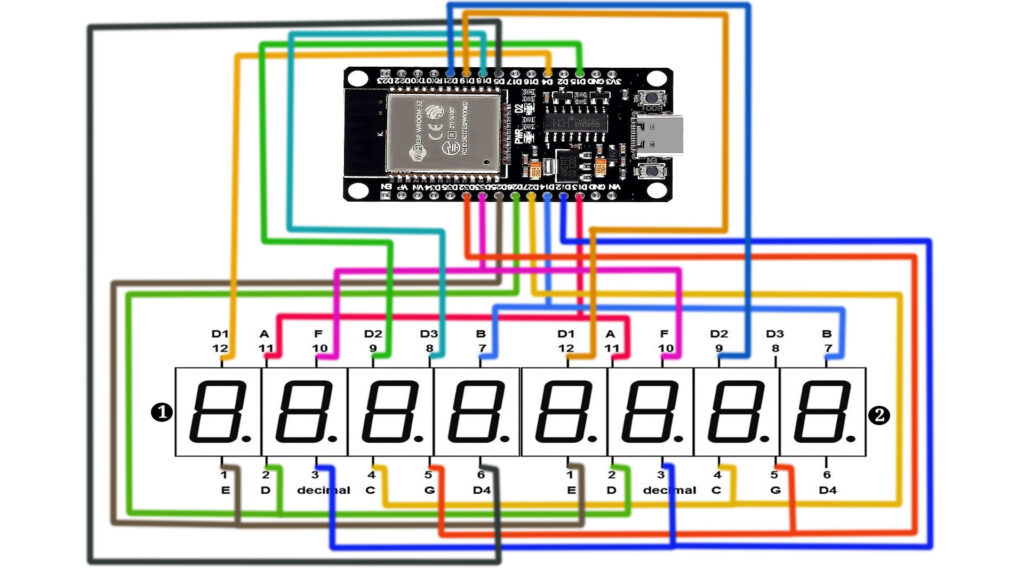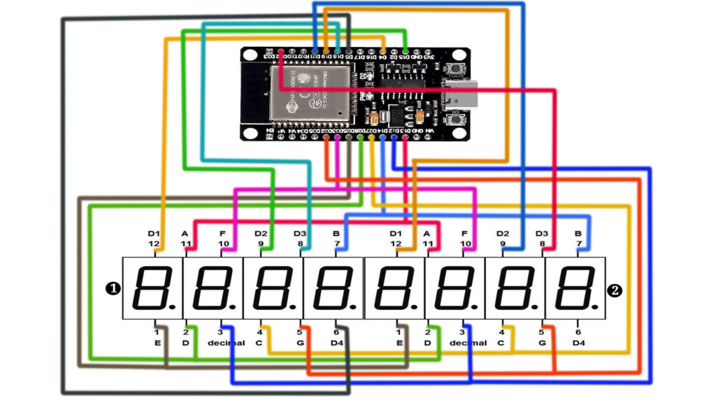 This project provides a simple yet effective way to add visual output to your electronics projects using an ESP32 and a dual 4-digit 7-segment display. It’s a great way for beginners to learn about wiring, coding, and using the Arduino IDE with the ESP32.