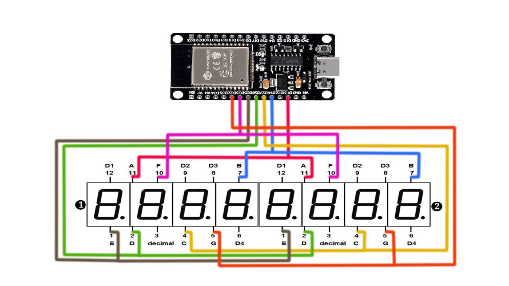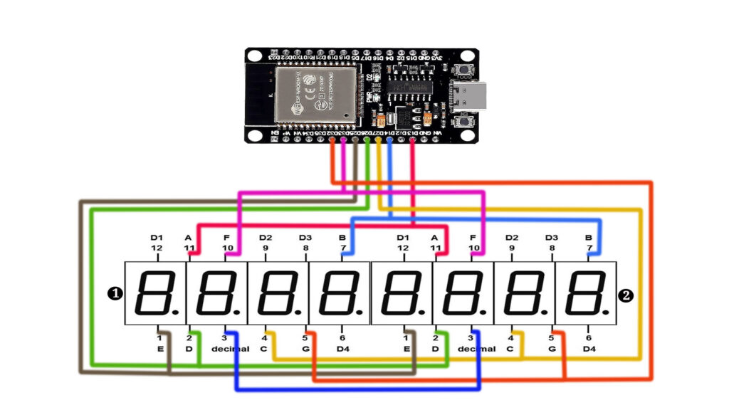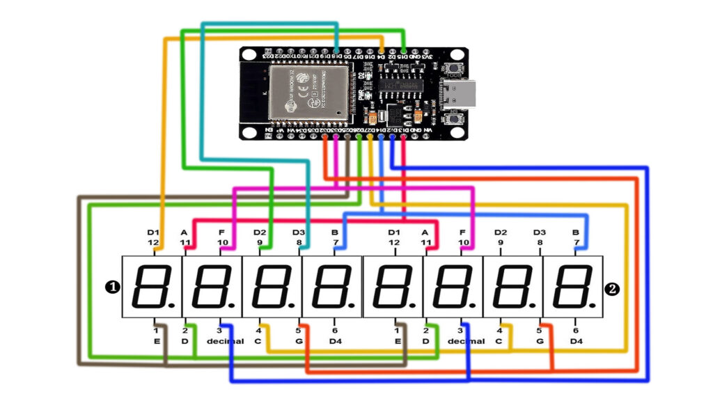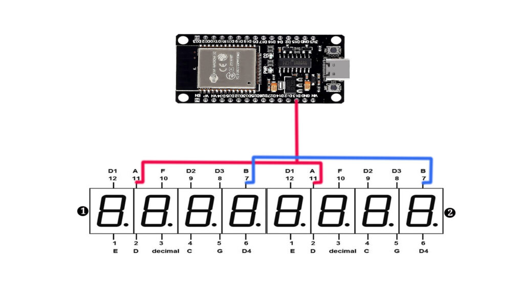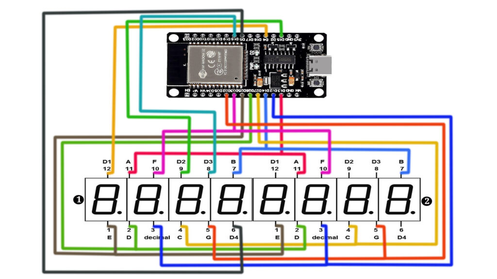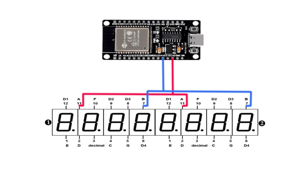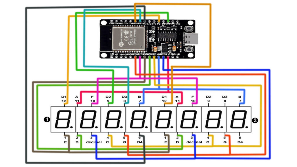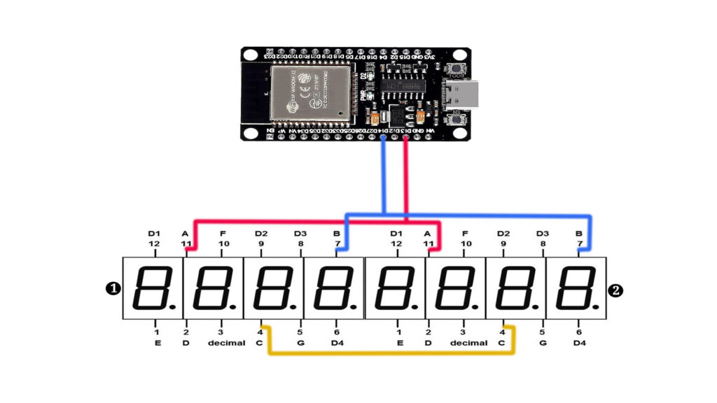 We’ll guide you step-by-step through the entire process, from setting up the hardware connections to coding in the Arduino IDE. By the end of this tutorial, you’ll understand how to wire an ESP32 to two 4-digit 7-segment displays (common anode, red). Let’s dive into the details!