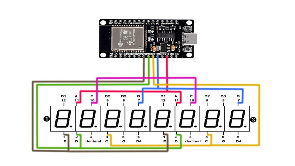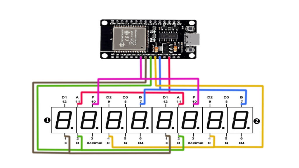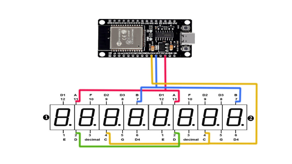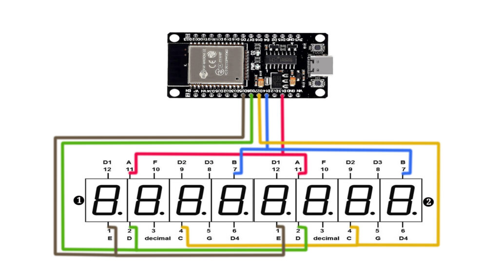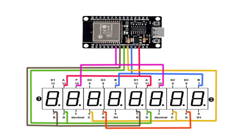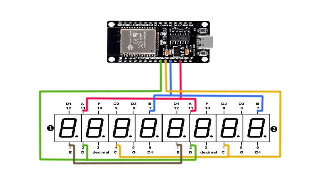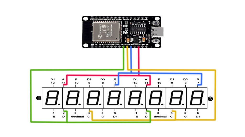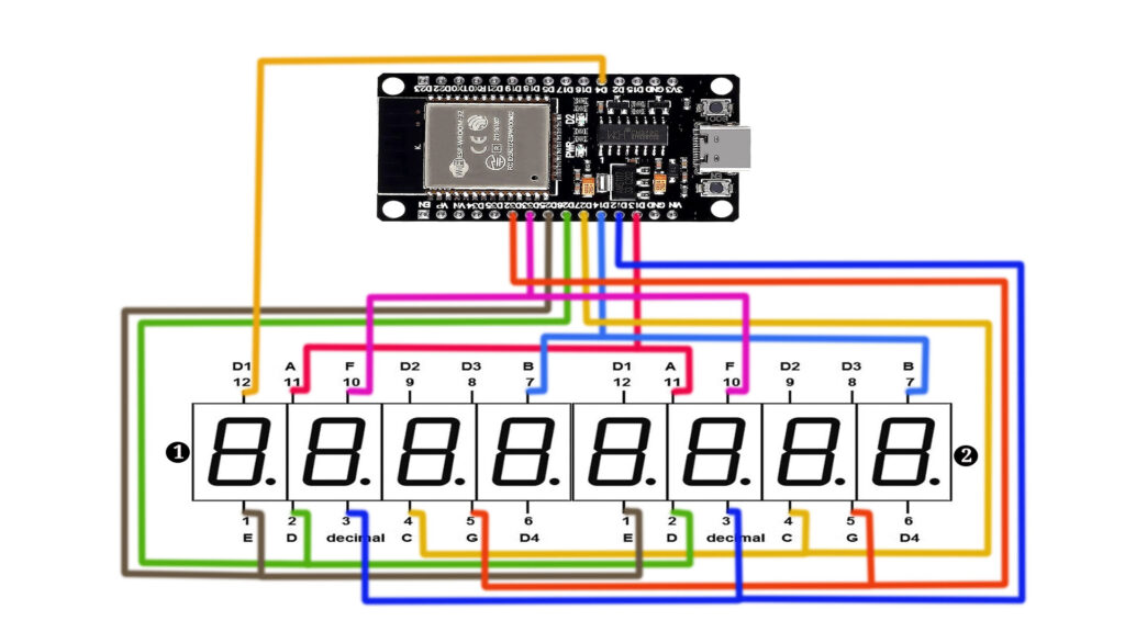 We’ll guide you step-by-step through the entire process, from setting up the hardware connections to coding in the Arduino IDE. By the end of this tutorial, you’ll understand how to wire an ESP32 to two 4-digit 7-segment displays (common anode, red). Let’s dive into the details!