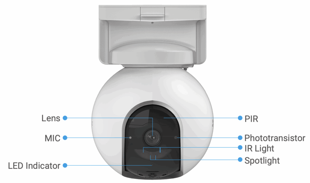 - Pan & Tilt Control: Offers a 360° field of view with PTZ (Pan/Tilt/Zoom) capabilities, controllable via the EZVIZ app for a broader surveillance range.