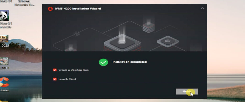 - Launch Options: After installation, check the Launch client box to open iVMS-4200 immediately. You can also select Create a desktop icon for quick access later.