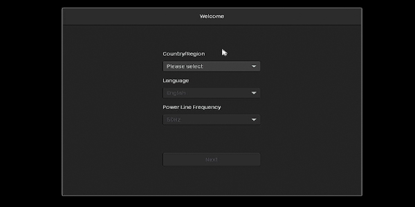 - Choose your country and language using the connected mouse, then click ‘Next’.
