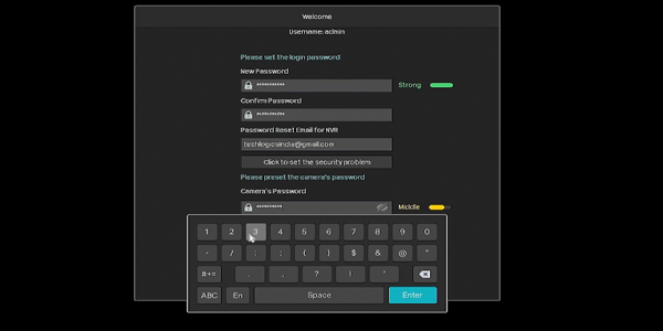 - To use the same password and email for the cameras as the NVR, check the ‘Same as NVR’ box.