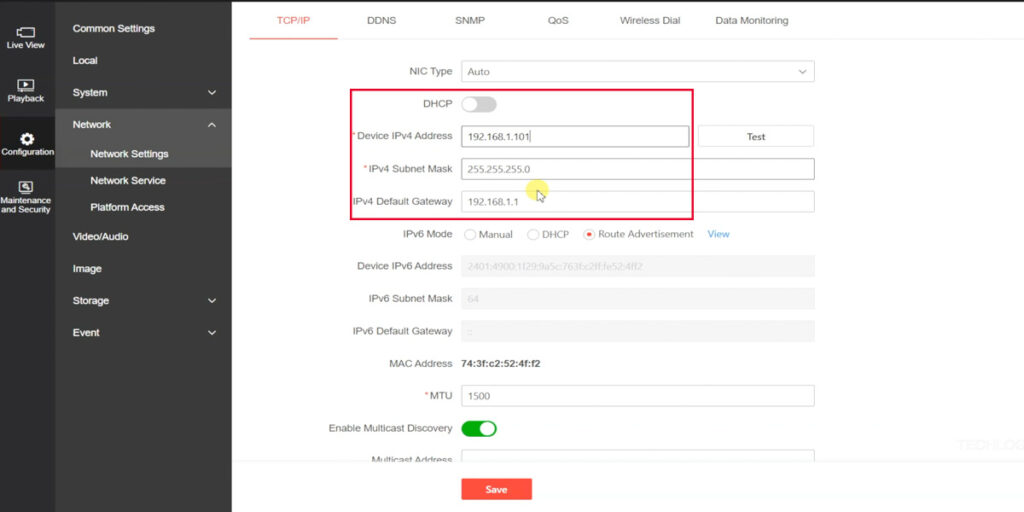 - Disable DHCP: By default, the camera uses DHCP to automatically assign an IP address. Uncheck the DHCP option to set a static IP.