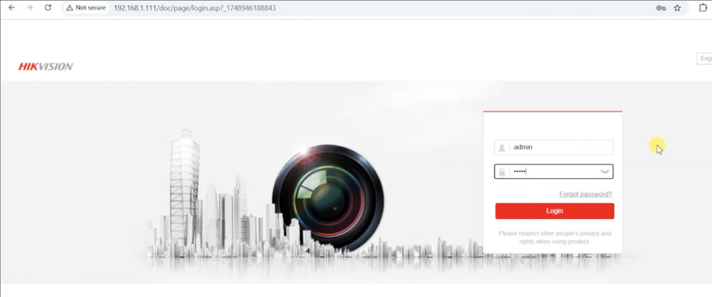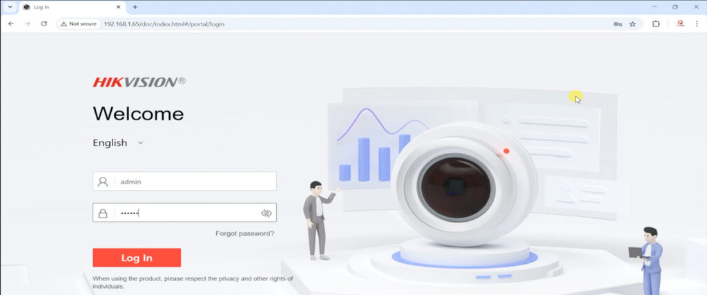 - Access the Camera’s Interface: Open your web browser and enter the camera’s current IP address in the URL bar. Log in with your credentials to access the live view and settings interface.