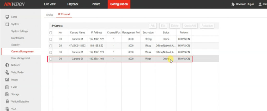 - Go to Camera Management: Navigate to Configuration > Camera Management.