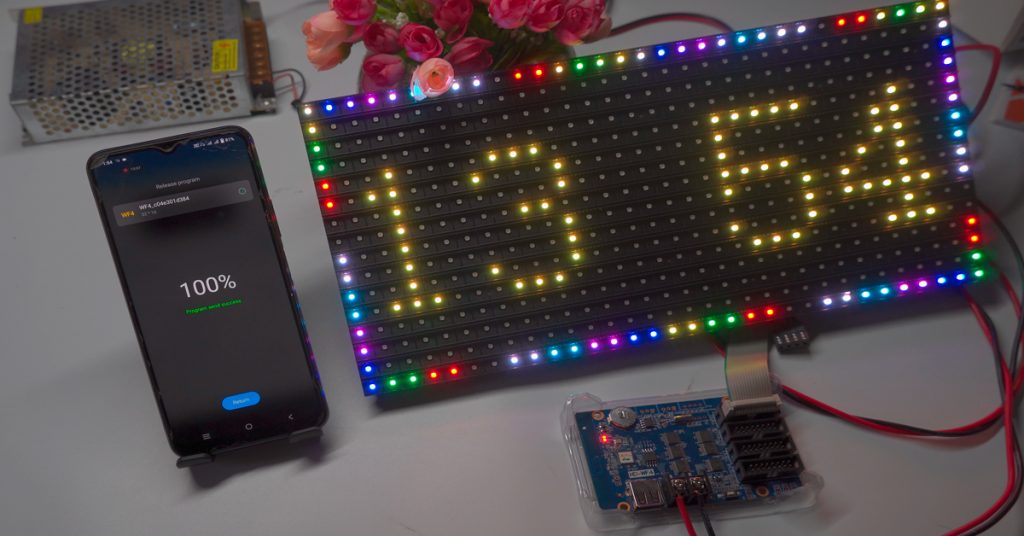 Power On and Configuration: Turn on the power. Initially, the display may not appear correctly. Use the LED art mobile app or PC software to select the correct display panel hardware with the controller and configure the panel pixel size.