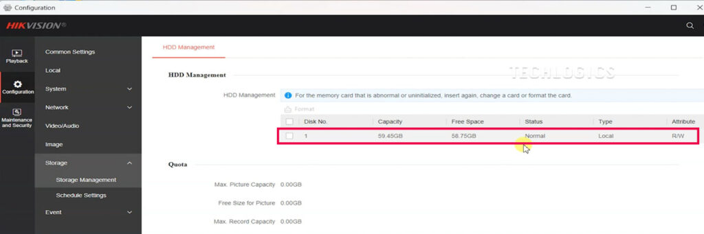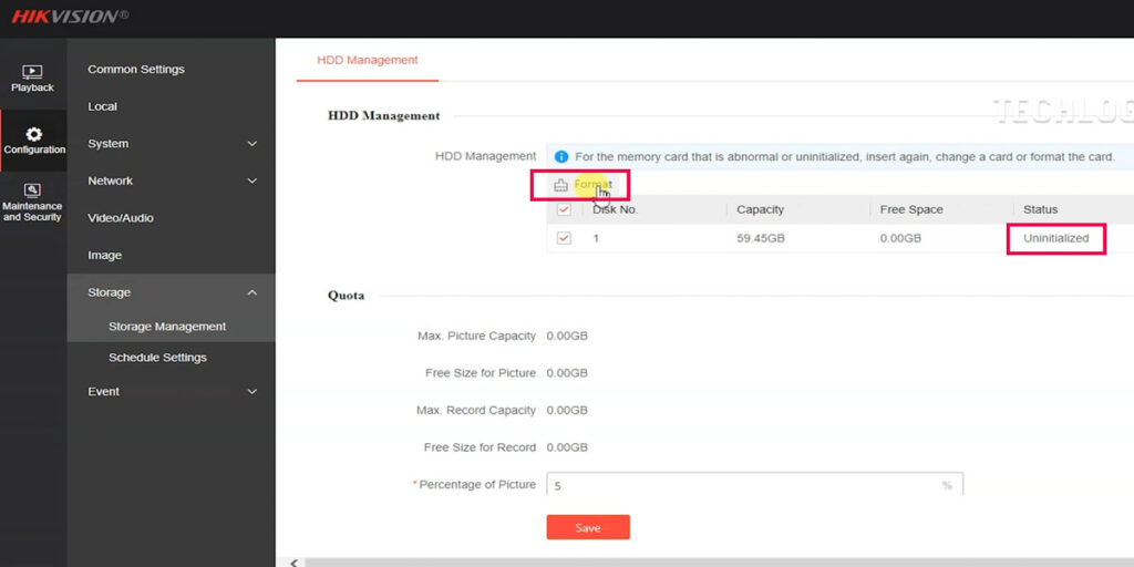 - Select the SD Card: Under the “HDD Management” section, locate your SD card. It will show up as “Uninitialized” if it hasn’t been formatted.