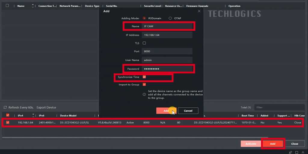 - Add the Camera: If you haven’t added the camera to the software yet, click on the “Device Management” option, and add the camera by entering the camera’s IP address and login credentials.