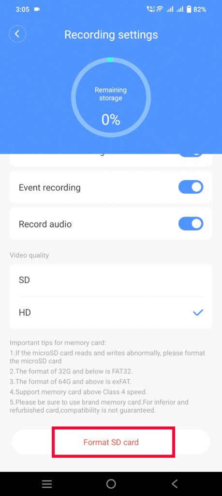- Formatting the SD Card: If you want to start recording fresh or if the memory card is in abnormal status, you can format the SD card by clicking on the “Format SD Card” option. You will hear a voice prompt once the memory card formatting is completed.