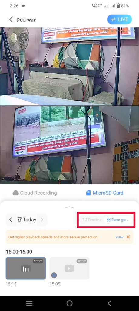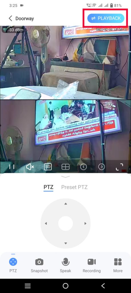 - Let’s check the recorded footage after some time using the playback option.