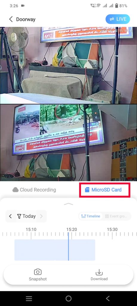 - You can see both continuous and event-based recordings as per the recording configuration under the “MicroSD Card” option.