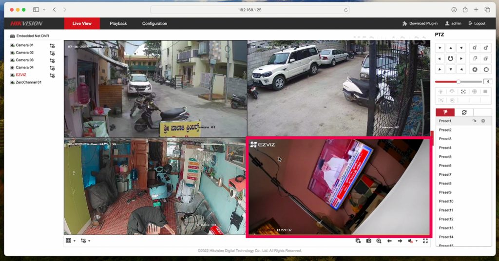 Ensure that your EZVIZ camera is operational and connected to the same network as your Hikvision DVR. Here, we’re using the latest version of the Hikvision 4-channel HVR, which supports four analog cameras and an additional IP camera. If you have an 8-channel or 16-channel DVR, you can add 2, 4, or more WiFi or IP cameras accordingly. For this demonstration, we are adding a WiFi camera as the 5th camera.