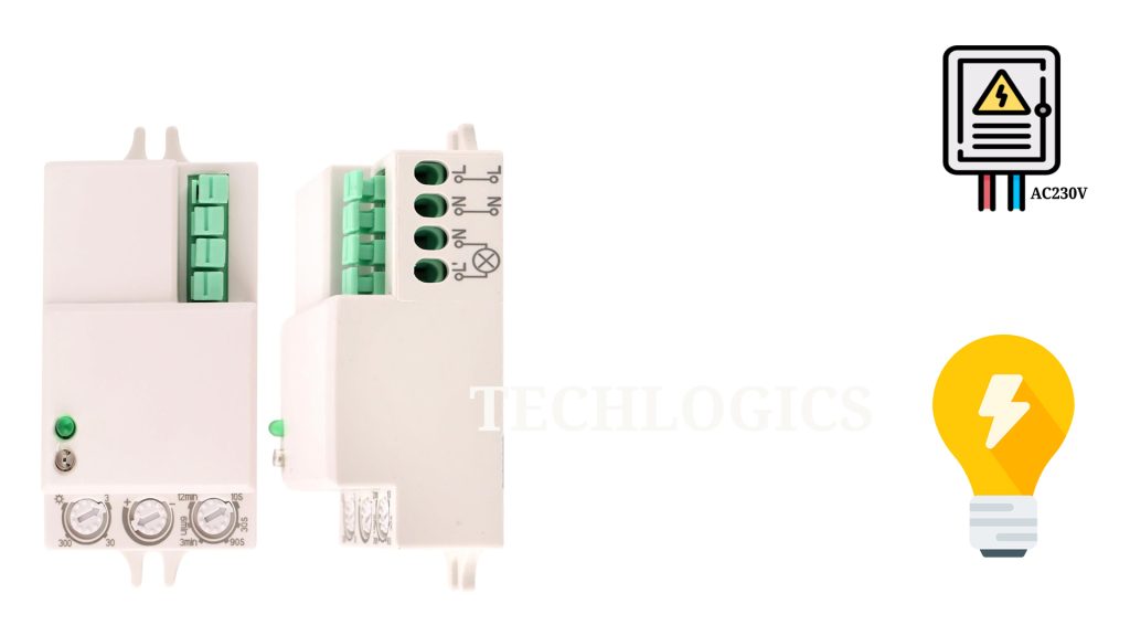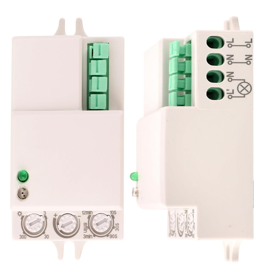 This sensor switch uses Microwave 5.8 Ghz cw ) technology to sense the presence of any person in a room and accordingly control the light. This is a better technology than the PIR sensor as it can falter in hotter weather. You can adjust the sensing distance of the person. The sensor also has a function in which it can permanently switch off the light over a certain ambient lux level. The Time delay after which the light is again switched off after being Switched on with the triger of a person’s presence.