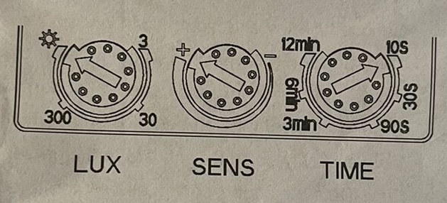 Turn the LUX knob clockwise on the maximum (sun), turn the SENS knob clockwise