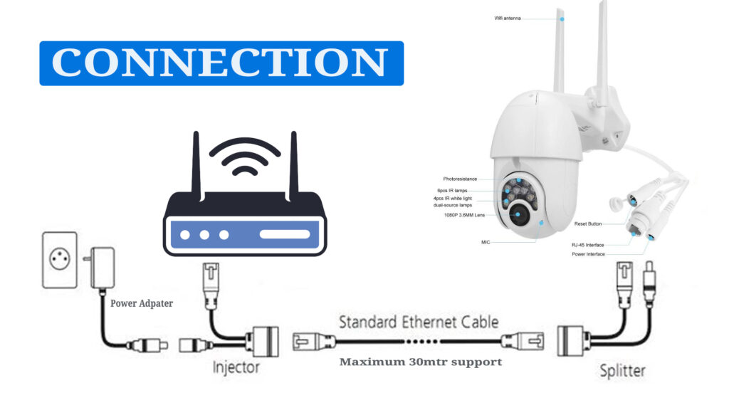 - Ethernet Connection: Connect one end of the Ethernet cable to the output of the PoE injector.