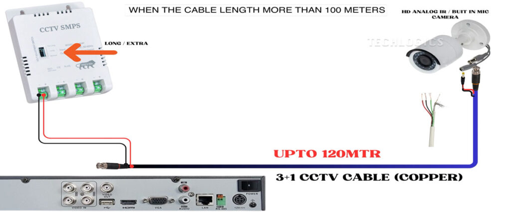 • If you decide to proceed with the 3+1 cable beyond 100 meters, it is crucial to set the SMPS voltage selection to “extra long,” enabling it to counterbalance the decrease in voltage that occurs due to the extended distance.