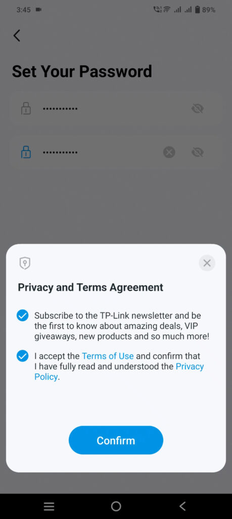 - Agree to the Privacy and Terms agreement and tap Confirm.