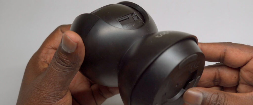 - Locate the Card Slot: The microSD slot is on the bottom of the camera, near the rotating lens. Gently lift or tilt the lens upward to access it.