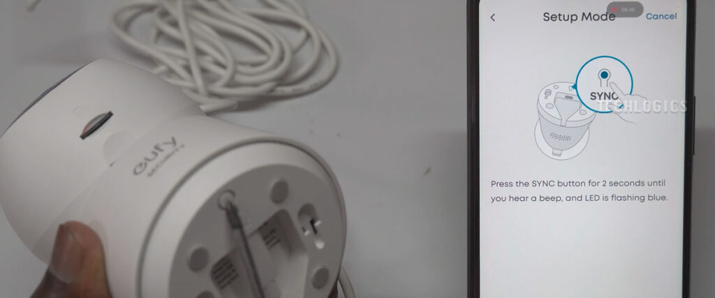 - Press and hold the SYNC button at the bottom of the camera for 2 seconds until you hear a beep.