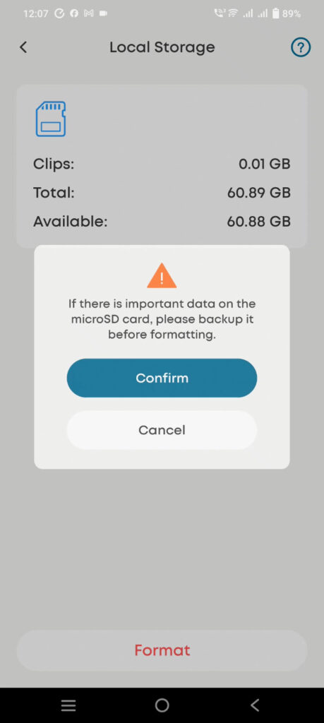 - If the card is “Uninitialized” or full, tap “Format” to prepare it for recording.