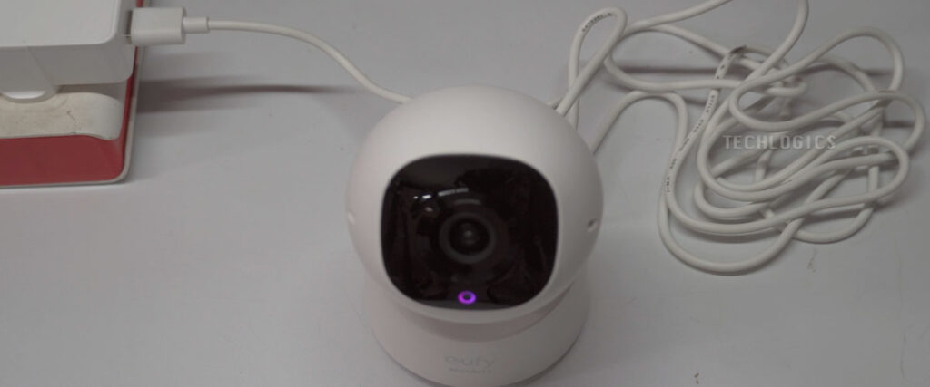 - Watch the Startup Sequence: The camera’s pan-tilt lens will rotate once, and a purple light will appear, indicating the boot-up process.