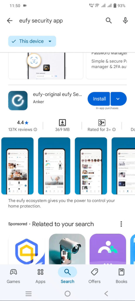 - Scan the QR code in the user manual, or search for “Eufy Security App” by Anker in the Play Store (Android) or App Store (iOS).