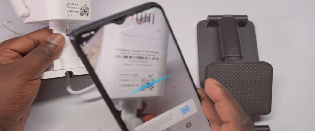 - Locate the QR code on the camera’s body (usually on a sticker) and scan it with your phone. The app will recognize the code and guide you through the remaining setup steps.