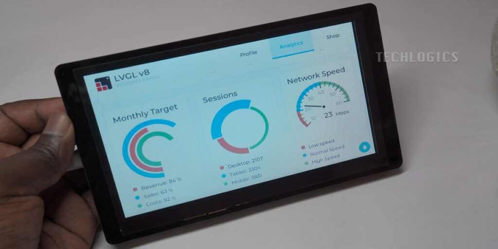 When you turn on the display, you’ll notice that it comes with preloaded demo graphics. These showcase the capabilities of the screen and the controller, including sample UI designs, animations, and graphics that highlight touch responsiveness.