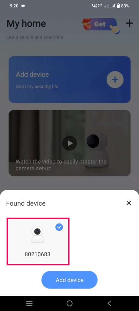 Select the camera and click on ‘Add Device’ to add the camera to your app.